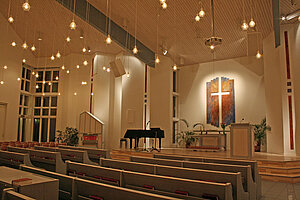 Rymmer ca 145 personer och används för Gudstjänst varje söndag kl. 10.00 samt för konserter, föredrag, kurser och andra samlingar.